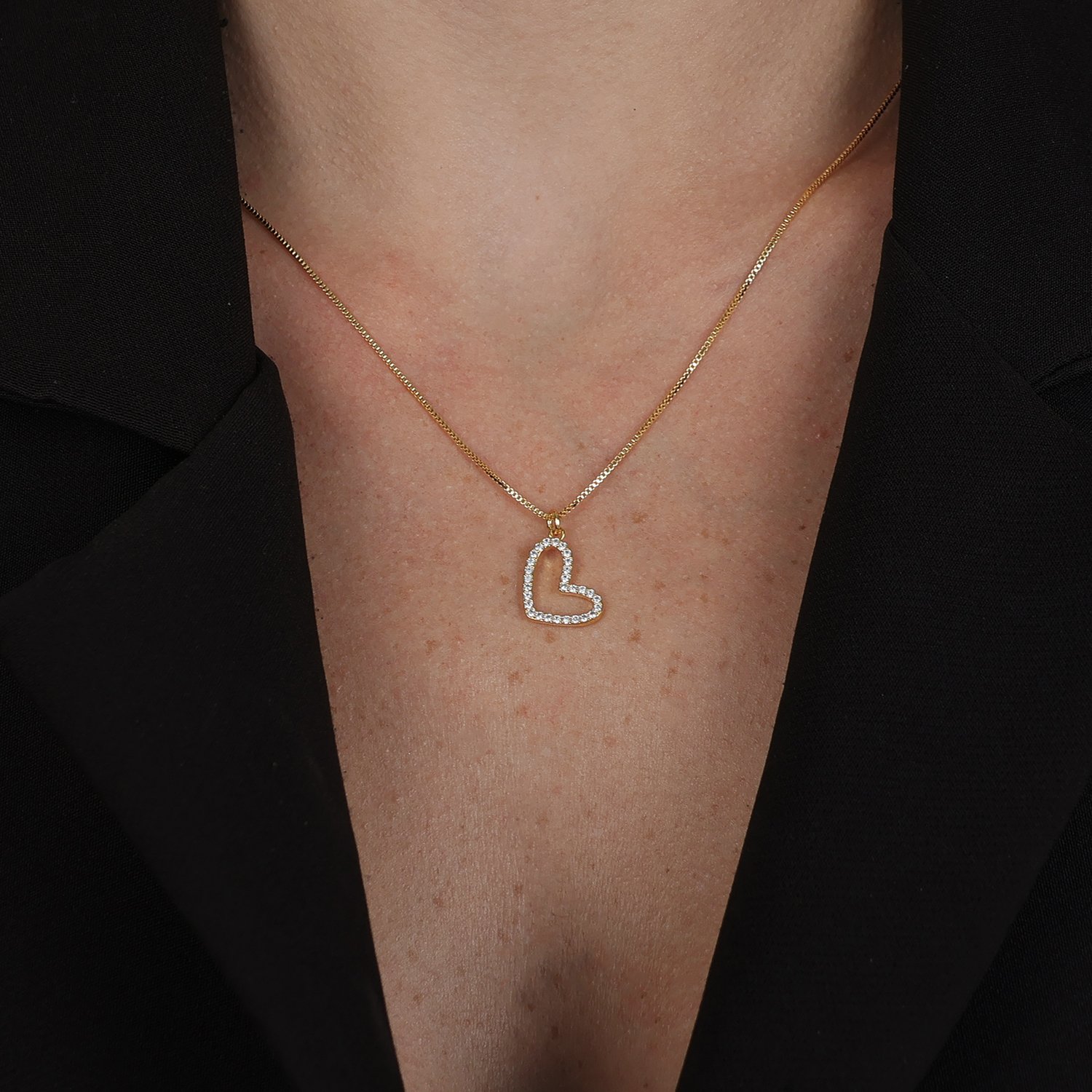 Colar Dourado de Coração Irregular Vazado com Zircônia